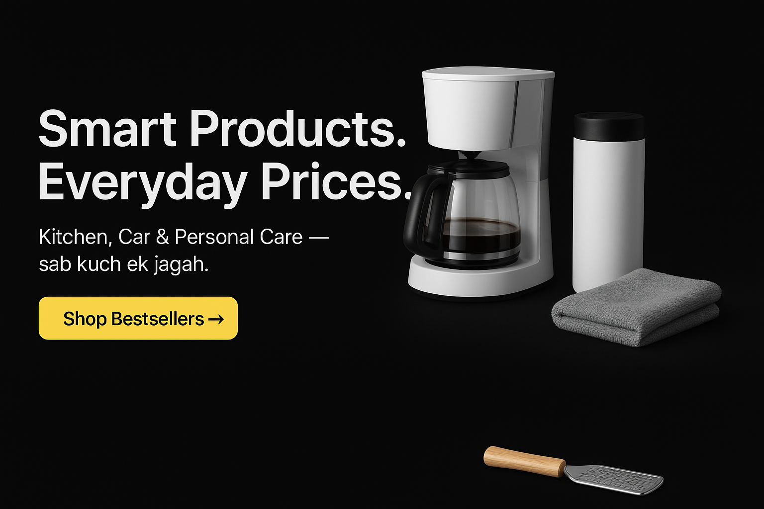 Hum kitchen tools, home décor items, car accessories, personal care products aur daily use products bechte hain – sab kuch ek hi jagah.